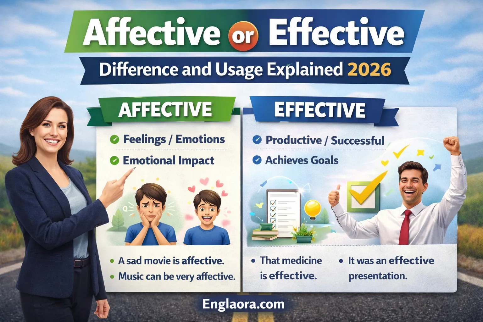 Understanding the difference between affective or effective may seem tricky at first, but once you know the meanings, it becomes very easy to choose the correct word. The key idea is simple. Affective relates to emotions, feelings, and psychological responses. Effective, on the other hand, describes something that works well and produces the desired result.