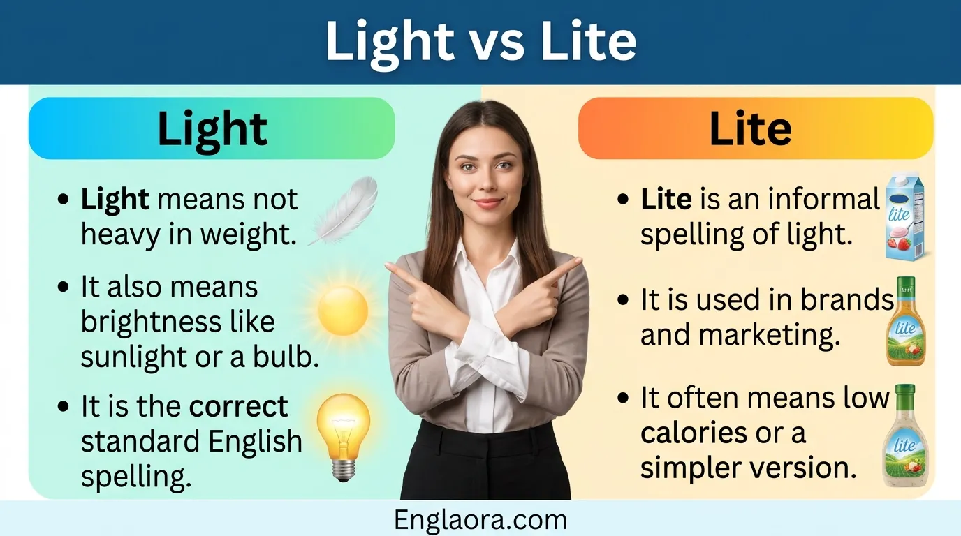 Knowing this small difference can help you write more clearly and avoid confusion. Next time you see light or lite, you will know exactly which one to use and why.