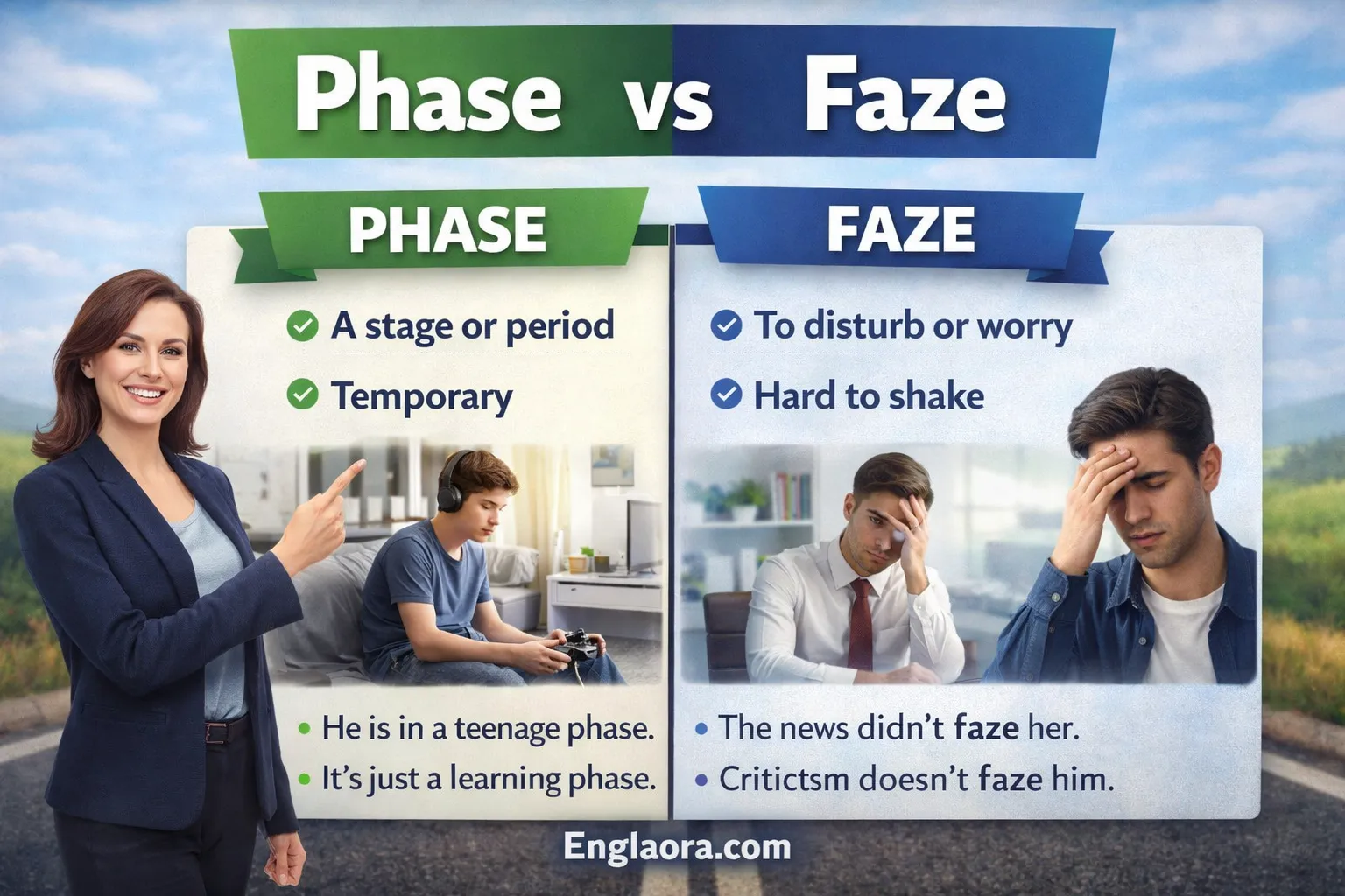 For a moment, I paused and thought, “Wait… is it phase or faze?” Both words sound exactly the same when spoken, and that made it even more confusing.