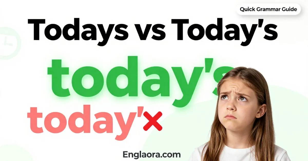 Use today’s when showing possession or meaning “today is.” Avoid “todays” in modern writing to keep your content clear and professional.